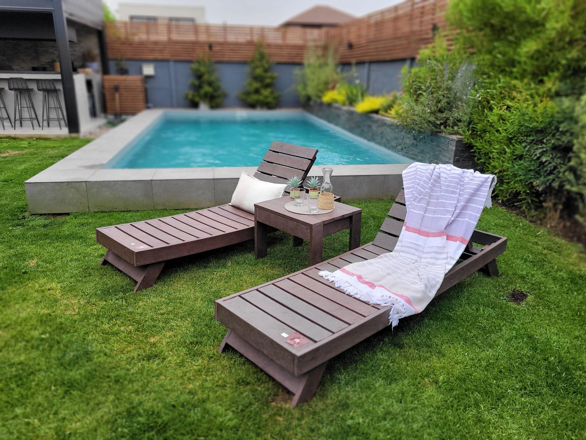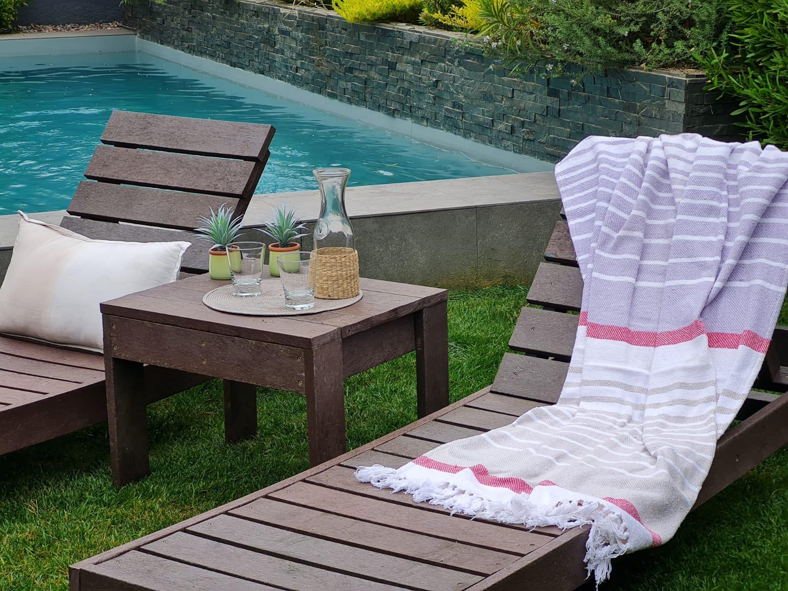 Incluye 2 reposeras y 1 mesa de centro